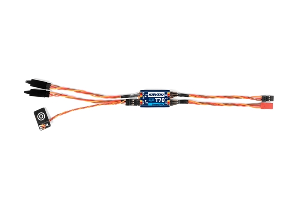 Die KAVAN Smart PRO T70-JR Doppelbatterie-Weiche mit Telemetrie-Expander sorgt für eine zuverlässige Stromversorgung durch zwei Akkus oder Akku plus BEC – inklusive Telemetrie, Touch-Schalter und automatischer Umschaltung. Perfekt für mittelgroße Modelle und alle, die auf maximale Sicherheit setzen!