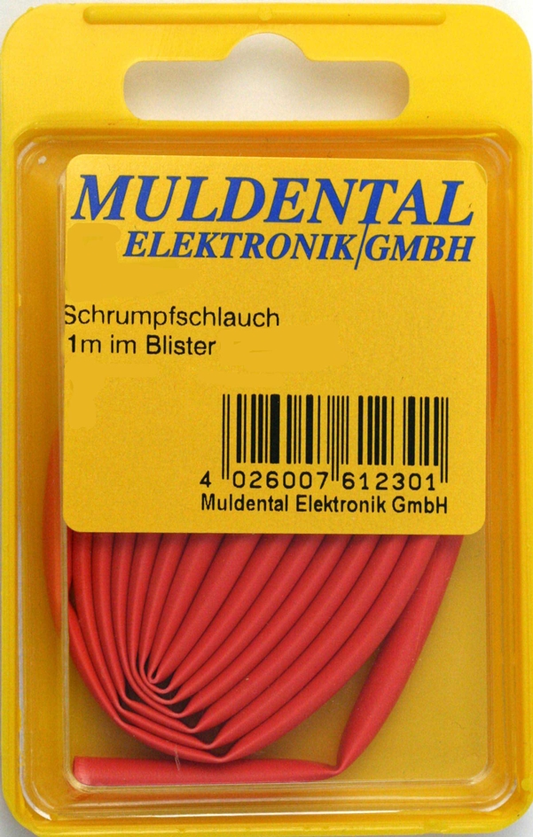 Der Muldental Schrumpfschlauch rot besteht aus Polyolefin und ist selbstverlöschend. Mit einer Schrumpfrate von 2:1 eignet er sich für viele typische Anwendungen in Elektronik und Modellbau.