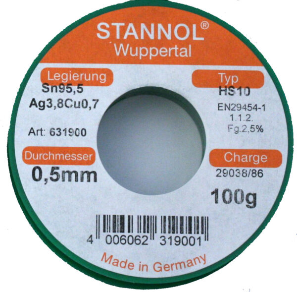 - 1 x Spule Stannol Lötzinn 0,5 mm 100 g Sn95,5Ag3,8Cu0,7